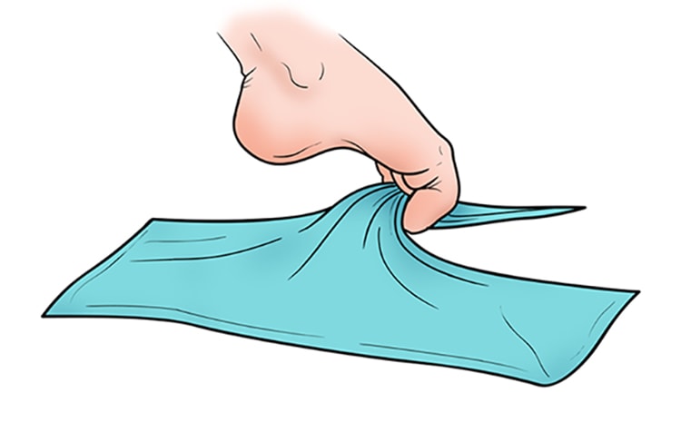 - Perform towel curls. Place a towel flat under your foot and use your toes to curl (scrunch) it.