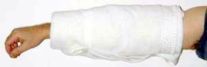 - Mantenga el codo recto por la noche al dormir. Esto se puede lograr envolviendo el codo recto con una toalla o usando una codera al revés.