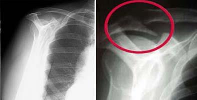 Radiografías. Como las radiografías no muestran los tejidos blandos del hombro, como el manguito de los rotadores, las radiografías simples de un hombro con dolor en el manguito son muy frecuentes o pueden mostrar un pequeño espolón óseo. Una vista especial de la radiografía, llamada anteroposterior, mostrará un pequeño espolón óseo en el borde frontal del acromion.