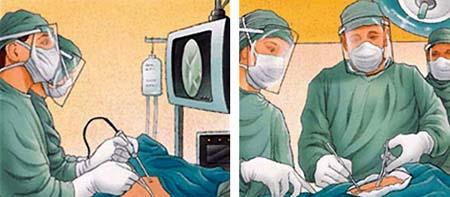 Técnica artroscópica. En una artroscopia, se insertan instrumentos quirúrgicos en dos o tres pequeñas heridas por punción alrededor del hombro. El médico examina el hombro a través de un endoscopio de fibra óptica conectado a una cámara de televisión, luego guía los pequeños instrumentos usando un monitor de video y extrae material óseo y tejido blando. En la mayoría de los casos, se extrae el borde frontal del acromion junto con parte del tejido bursal.