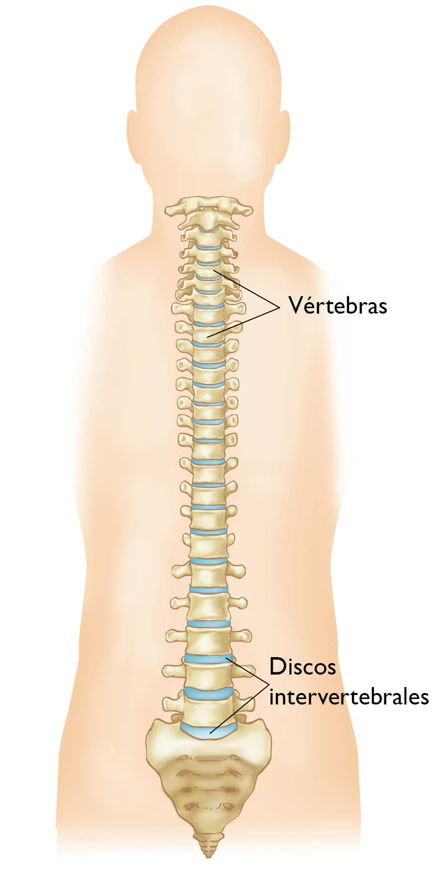La columna está formada por huesos pequeños llamados “vértebras”, que se sitúan uno encima del otro y crean las curvas naturales de la espalda.