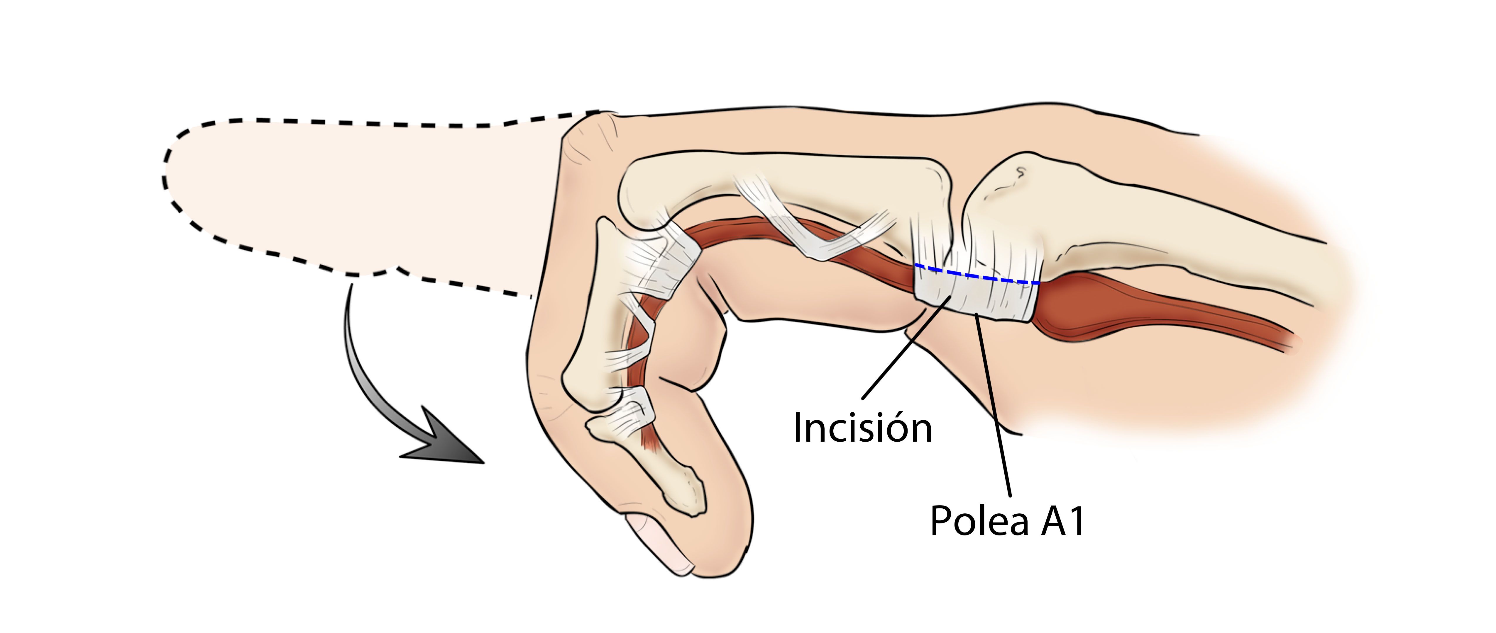 El objetivo del procedimiento es liberar la polea A1 que bloquea el movimiento del tendón, para que el tendón flexor pueda deslizarse con más facilidad a través de la vaina del tendón. En general, el procedimiento se realiza de manera ambulatoria con una inyección de anestesia local para adormecer la zona de la cirugía.