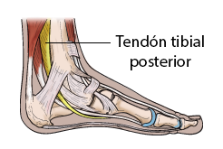 - Hinchazón y dolor alrededor del tendón tibial posterior. En general, la hinchazón y el dolor se ubican justo detrás y debajo de la protuberancia interna del tobillo. Es posible que también tenga dolor en el arco en sí.