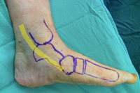 - Otro tipo de osteotomía del calcáneo implica alargar la parte externa del talón para ayudar a empujar los dedos del pie y reorientarlos hacia el centro (lo que corrige la deformidad de “demasiados dedos”).