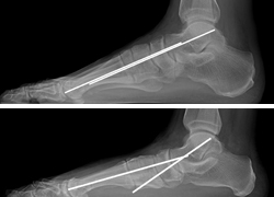 En ocasiones, el pie plano se vuelve rígido o también hay artritis en las articulaciones clave del pie. En estos casos, el pie no será lo suficientemente flexible para que se trate con éxito mediante cortes de huesos y transferencias de tendones.