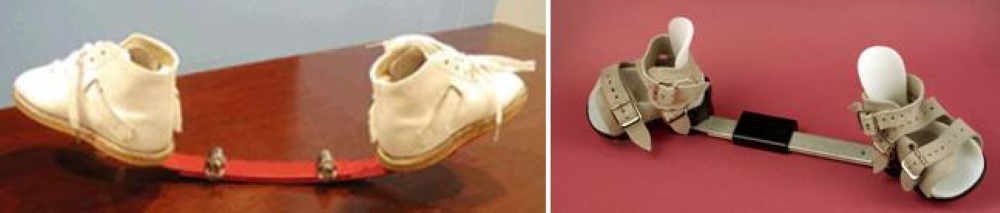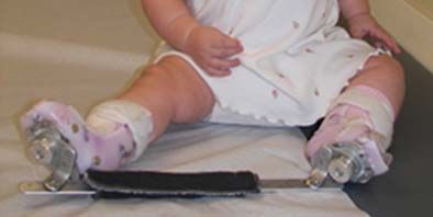 Hay varios tipos diferentes de férulas, pero todas consisten en zapatos, sandalias o calzado a medida que se sujetan a los extremos de una barra. La barra puede ser rígida (ambas piernas se mueven juntas) o dinámica (cada pierna se mueve de manera independiente). El médico de su hijo hablará con usted sobre el tipo de férula que satisfaga mejor las necesidades de su bebé.