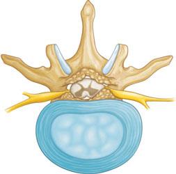 Cuando hay un aplastamiento progresivo de la columna, ocurren dos cosas. Primero, el peso se transfiere a las superficies articulares detrás de la médula espinal. Segundo, los canales por donde salen los nervios reducen su tamaño.