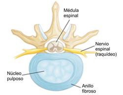 Anillo fibroso. Este es el anillo exterior flexible y robusto del disco. Ayuda a conectar con las vértebras.