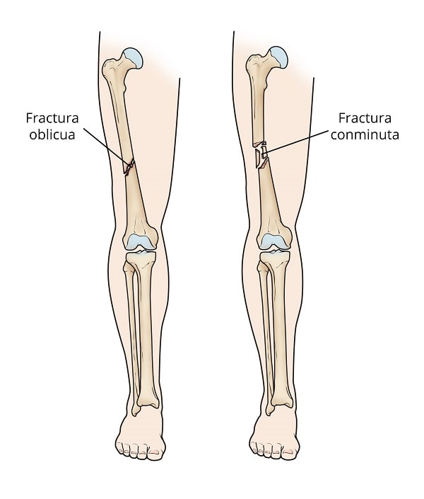 Estos son algunos de los tipos más frecuentes de fracturas de la diáfisis femoral: