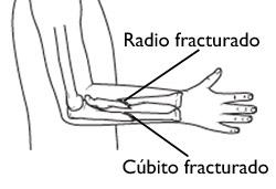 - Fractura de Monteggia. La lesión afecta a los dos huesos del antebrazo. Por lo general hay una fractura en el cúbito y la parte superior (cabeza) del radio está luxada. Ésta es una lesión muy severa y requiere atención urgente.