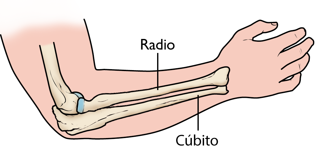 En la parte proximal del antebrazo, la parte del antebrazo más cercana codo, el cúbito es más grande. En la parte distal del antebrazo, la parte del antebrazo más cercana a la muñeca, el radio es más grande.