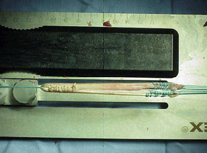 Si en la exploración física se determina que hay un desgarro del LCA, el cirujano preparará el injerto. Obtendrá (para un autoinjerto) o descongelará (para un aloinjerto) el tendón seleccionado para crear un injerto que tenga el tamaño adecuado para el paciente.