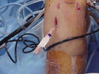 Después de haber preparado el injerto, el cirujano hará incisiones pequeñas (1 cm), llamadas portales, en la parte anterior de la rodilla e insertará el artroscopio y los instrumentos.