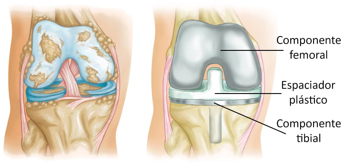 Problemas con los implantes. Aunque los diseños y los materiales de los implantes, así como las técnicas quirúrgicas, siguen avanzando, las superficies de los implantes pueden desgastarse y los componentes pueden aflojarse. Además, aunque generalmente se prevé una amplitud de movimiento promedio de 115° después de la cirugía, en ocasiones, se puede formar tejido cicatricial en la rodilla y el movimiento podría estar más limitado, particularmente en los pacientes que tenían movimiento limitado antes de la cirugía.